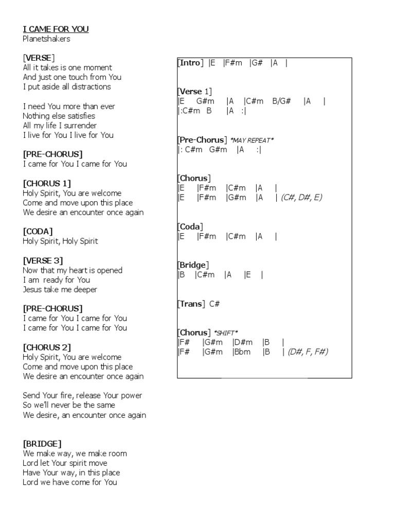 I Came For You Docx 0 Pdf Song Structure Jesus